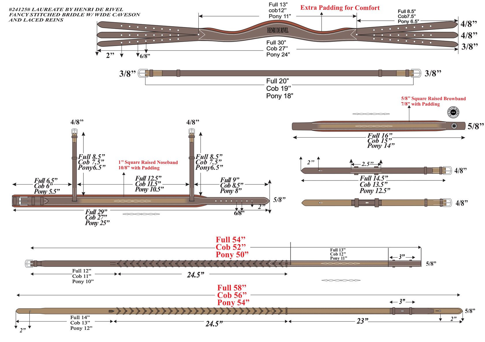• Premium European Leather • Oak Bark Color • Soft padded Mono Crown • Cob, Horse and Oversize • Comes complete with 5/8 square raised fancy stitched laced reins