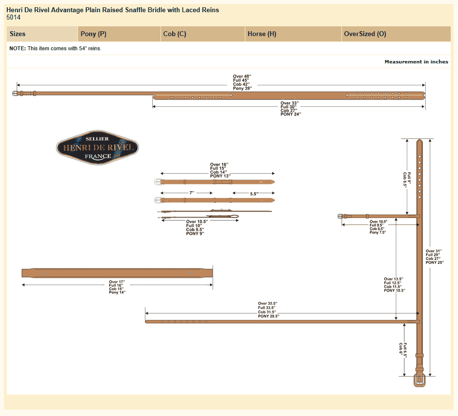 The Henri de Rivel Advantage Plain Raised Bridle is affordable, yet durable. This bridle features tone on tone stitching for a simple style. Lovely enough for the show ring as well as every day schooling. Complete with plain 5/8" laced reins. Dimensions: 5/8 brow and nose bands, ½ cheek pieces. *Bit shown in image not included*